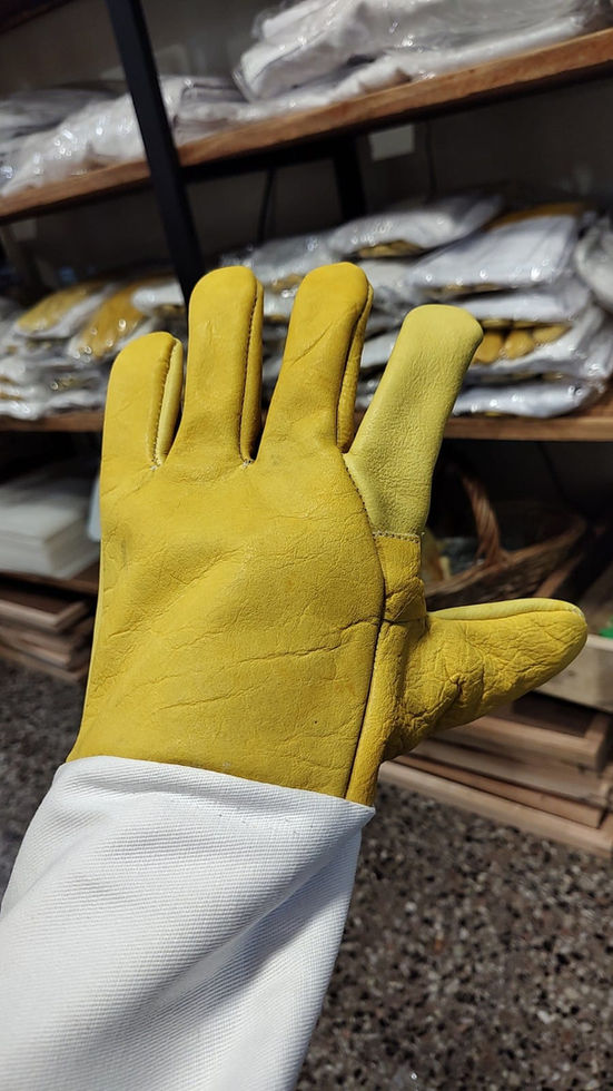 Guantes de vaqueta, con manga hasta el codo. Mano reforzada en zonas de apoyo, realizado en cuero de vaqueta.